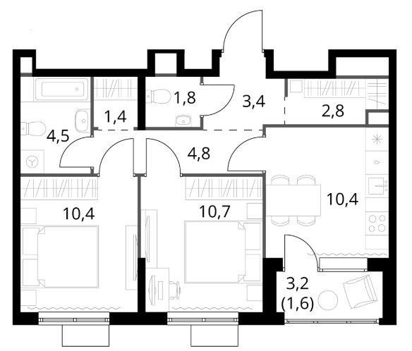 Двухкомнатная |