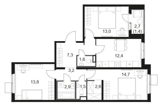 Трехкомнатная |