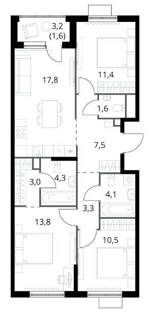 Трехкомнатная |