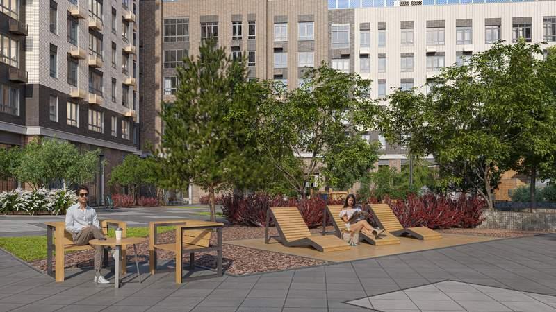 - Спортивная среда: закольцованный веломаршрут с навигацией, спортивный комплекс с термами, закрытый тренажерный зал и зоны ворк-аута
