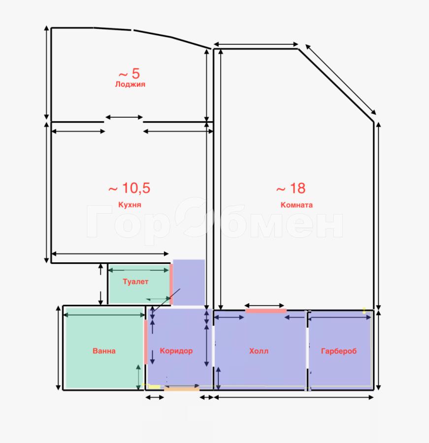 Очен комфортная и уютная планировка: Большая и светлая жилая комната 18м2, просторная кухня правильной формы 10.5м2, раздельный санузел. Казалось бы, этого уже достаточно )